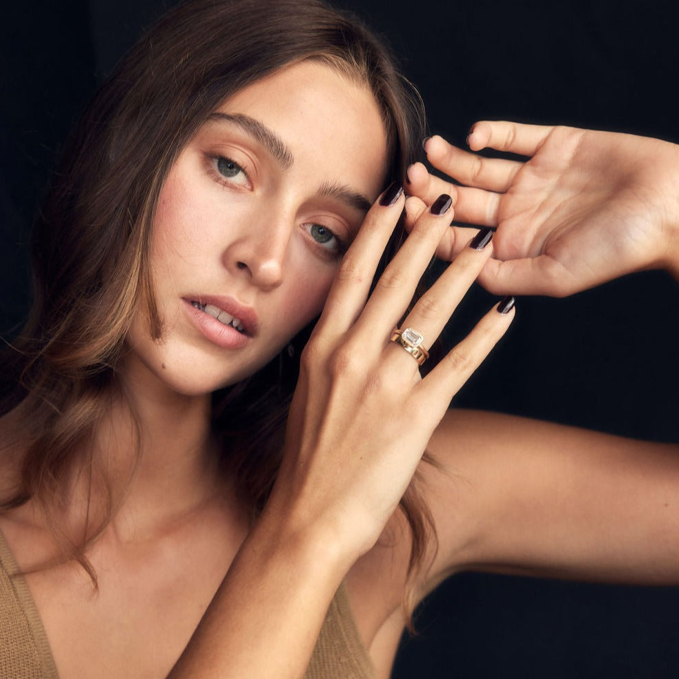 Bezel settings are beloved for their practicality, durability and sleek look. She's not just practical, though! The Agnes is at home in a simple stack or in more contemporary textural combinations. If you're looking for a clean, style-forward, timeless design, you've met your perfect match!
