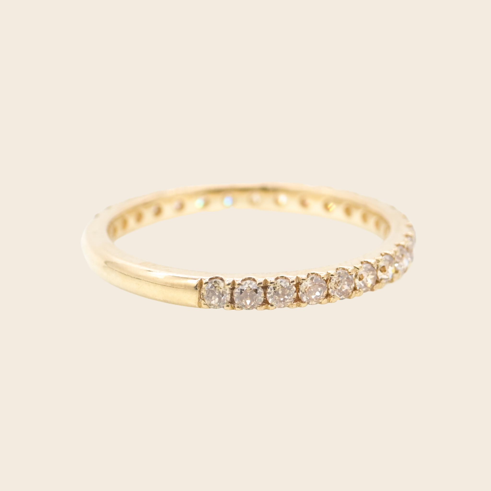 Meet our champagne moissanite French pavé band.