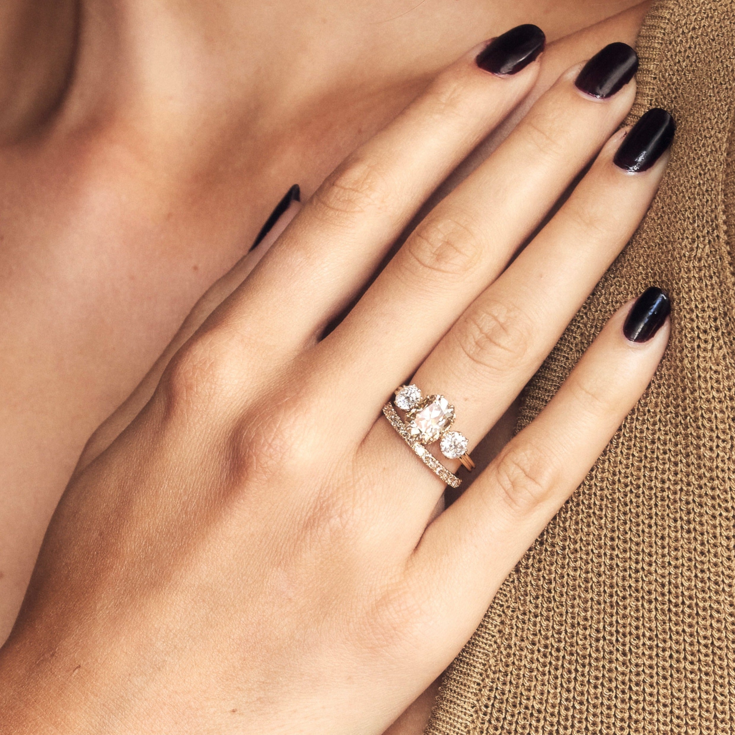 Named after the renowned champagne region of France, its warm tones play beautifully with colourless and warm stones alike. This band might be perfect if you are looking for an unexpected wedding band pairing.